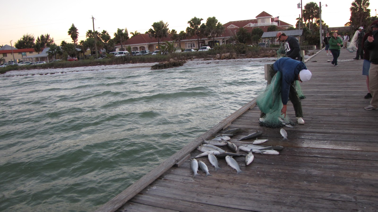 | People catch a lot of fish on the Rod and Reel Pier, Anna Maria, Florida. [They said they would sell those Mullet to us by $1.00/pound. I thought that's a good deal.] |